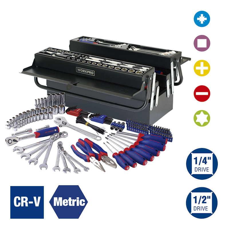 • 11 Bocallaves CRV encastre de 1/4”: 4, 5, 5.5, 6, 7, 8, 9, 10, 11, 12, 13mm.